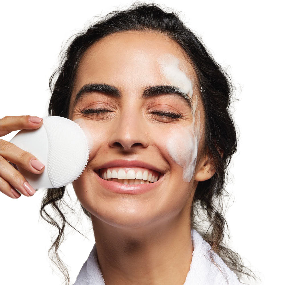 Gently glide the device in circular motions over your face for 1 min. Cleanse all 4 facial zones (chin, cheeks, forehead, nose & under eye regions) using gentle circular outward motions. Adjust the pulsation intensity as desired.