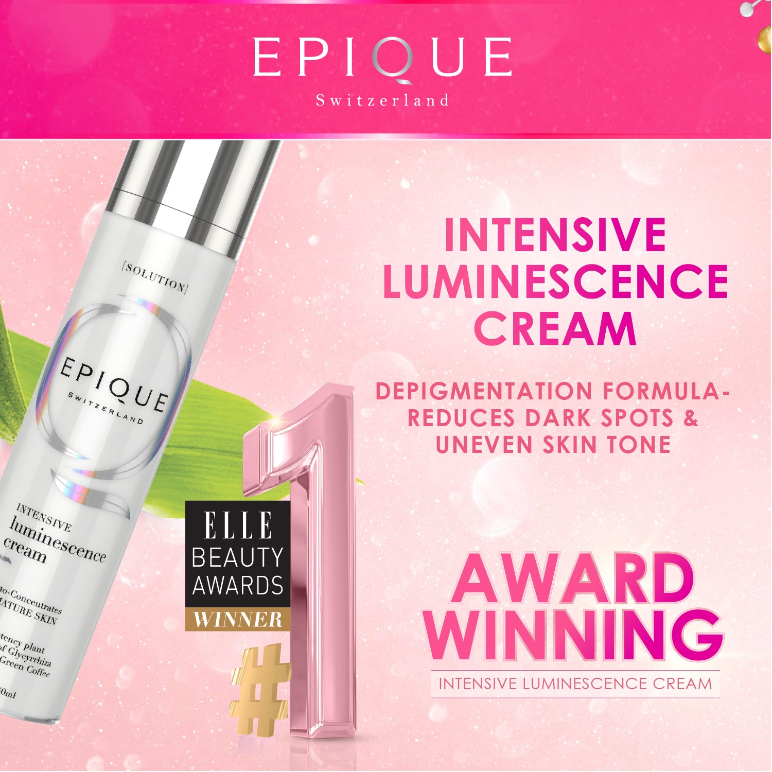 Epique's Intensive Luminescence Cream is highly effective in reducing pigmentation. It deeply targets dark spots, balancing skin tone for a radiant complexion. Clinically tested, it absorbs easily, enhancing luminosity and preventing future discoloration. As a depigmentation cream, it's formulated to combat hyperpigmentation and uneven skin tone effectively.